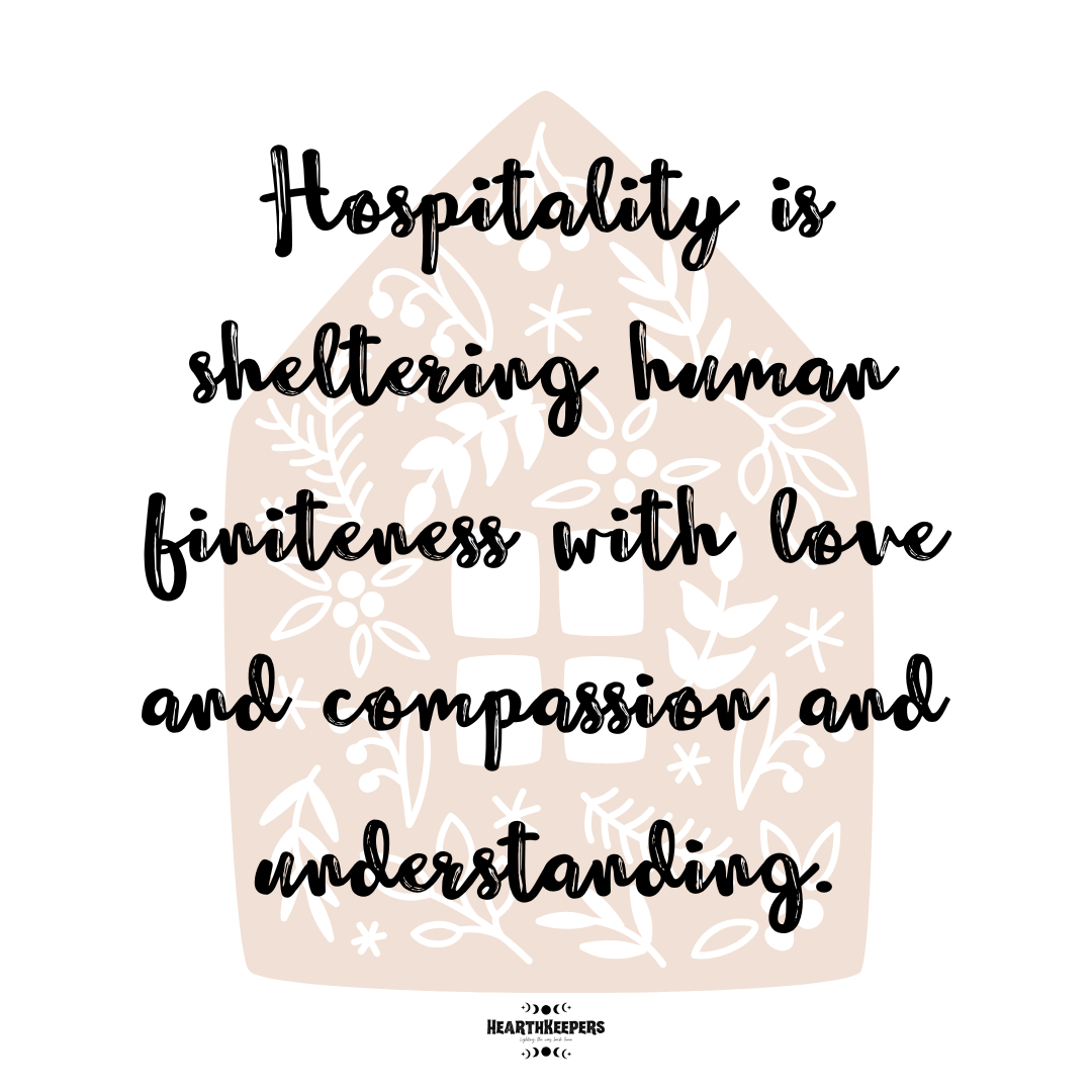 Hospitality is sheltering human finiteness with love and compassion and understanding. This means we must take into account the physical needs of the people around us. This work is how we build strong cultures within our families and strong communities and connections with those outside our four walls.